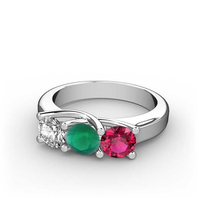 Beyaz zirkon, kök zümrüt ve rodolit garnet 925 ayar gümüş yüzük