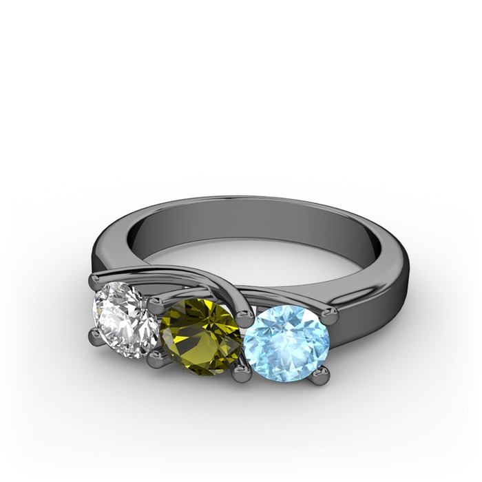 Beyaz zirkon, peridot ve akuamarin 925 ayar siyah rodyum kaplama gümüş yüzük