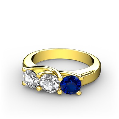 Beyaz zirkon, pırlanta ve lab safir 18 ayar altın yüzük (0.5 karat)