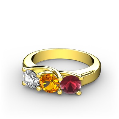 Beyaz zirkon, sitrin ve kök yakut 14 ayar altın yüzük