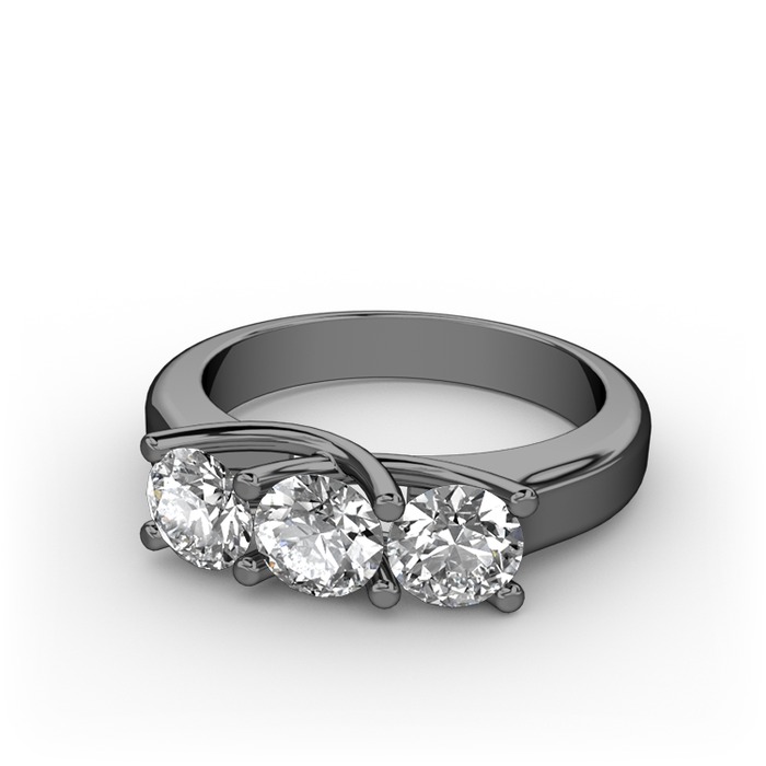 Beyaz zirkon, swarovski ve pırlanta 925 ayar siyah rodyum kaplama gümüş yüzük (0.5 karat)