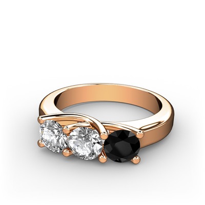 Beyaz zirkon, swarovski ve siyah zirkon 18 ayar rose altın yüzük