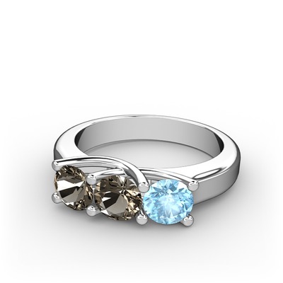 Dumanlı kuvars ve akuamarin 14 ayar beyaz altın yüzük