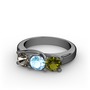 Dumanlı kuvars, akuamarin ve peridot 925 ayar siyah rodyum kaplama gümüş yüzük