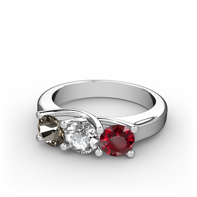 Dumanlı kuvars, beyaz zirkon ve garnet 14 ayar beyaz altın yüzük