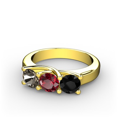 Dumanlı kuvars, garnet ve siyah zirkon 925 ayar altın kaplama gümüş yüzük