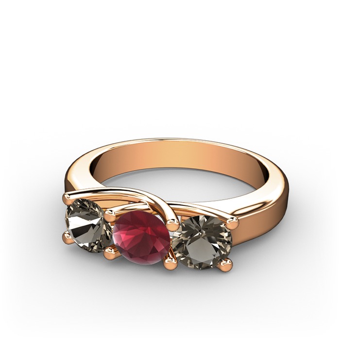 Dumanlı kuvars ve kök yakut 14 ayar rose altın yüzük