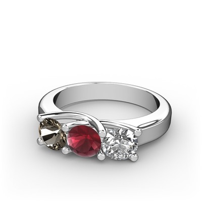 Dumanlı kuvars, kök yakut ve beyaz zirkon 8 ayar beyaz altın yüzük