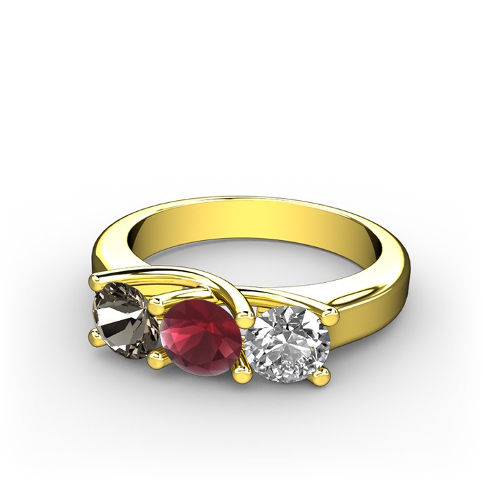 Dumanlı kuvars, kök yakut ve swarovski 18 ayar altın yüzük