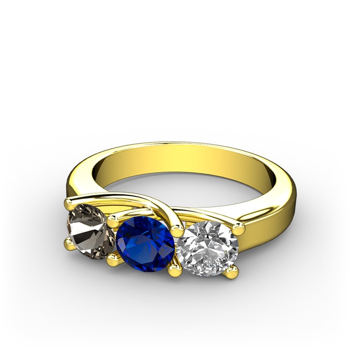 Dumanlı kuvars, lab safir ve beyaz zirkon 8 ayar altın yüzük