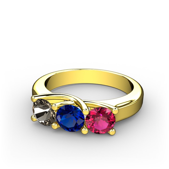 Dumanlı kuvars, lab safir ve rodolit garnet 925 ayar altın kaplama gümüş yüzük