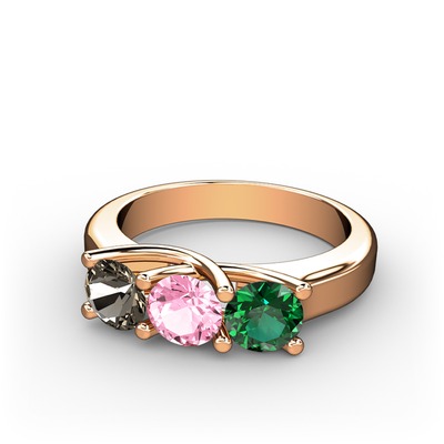 Dumanlı kuvars, pembe kuvars ve yeşil kuvars 925 ayar rose altın kaplama gümüş yüzük
