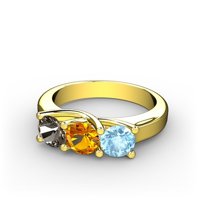 Dumanlı kuvars, sitrin ve akuamarin 18 ayar altın yüzük