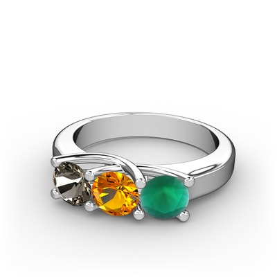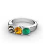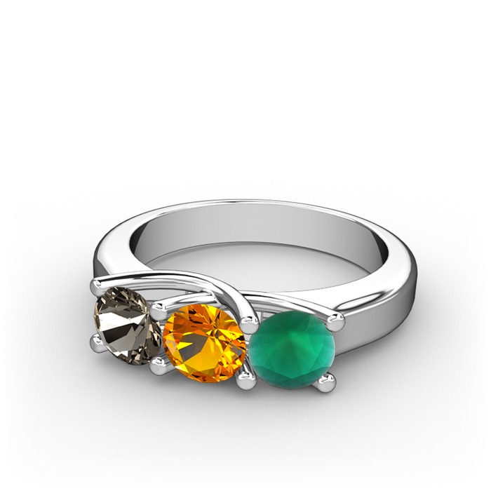 Dumanlı kuvars, sitrin ve kök zümrüt 18 ayar beyaz altın yüzük