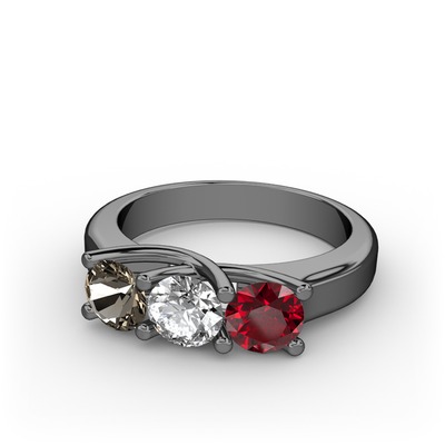 Dumanlı kuvars, swarovski ve garnet 925 ayar siyah rodyum kaplama gümüş yüzük