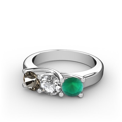 Dumanlı kuvars, swarovski ve kök zümrüt 8 ayar beyaz altın yüzük