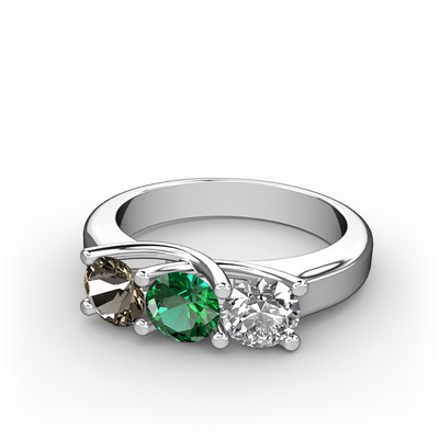 Dumanlı kuvars, yeşil kuvars ve beyaz zirkon 925 ayar gümüş yüzük