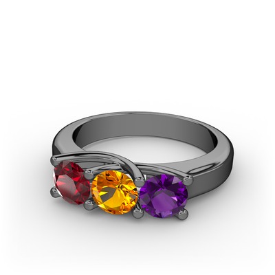 Garnet, sitrin ve ametist 925 ayar siyah rodyum kaplama gümüş yüzük