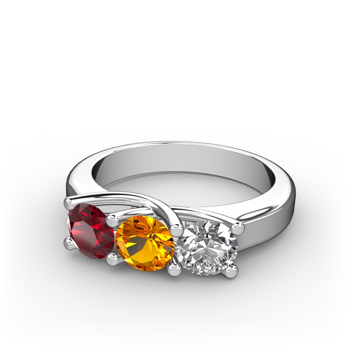 Garnet, sitrin ve pırlanta 18 ayar beyaz altın yüzük (0.5 karat)