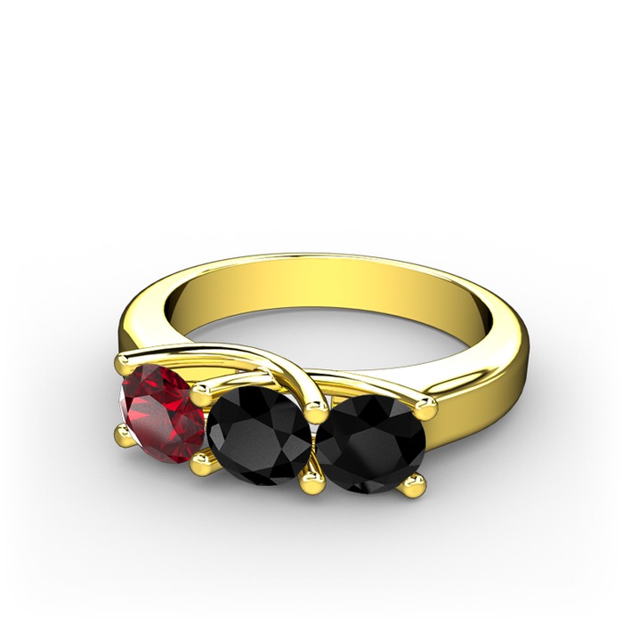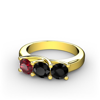 Garnet ve siyah zirkon 18 ayar altın yüzük