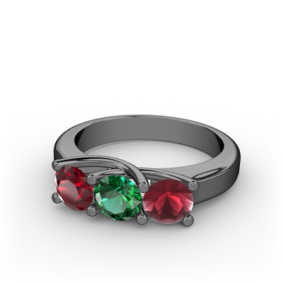 Garnet, yeşil kuvars ve kök yakut 925 ayar siyah rodyum kaplama gümüş yüzük