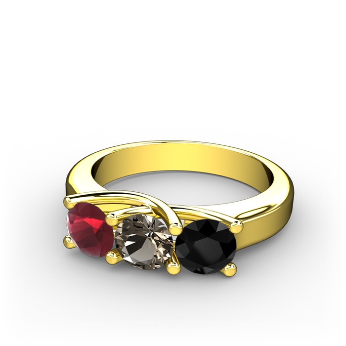 Kök yakut, dumanlı kuvars ve siyah zirkon 8 ayar altın yüzük
