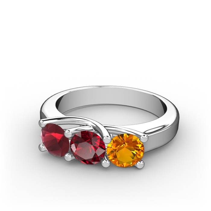 Kök yakut, garnet ve sitrin 925 ayar gümüş yüzük