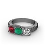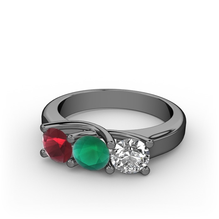 Kök yakut, kök zümrüt ve swarovski 925 ayar siyah rodyum kaplama gümüş yüzük
