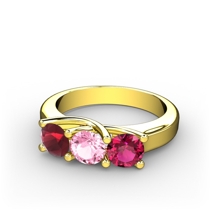 Kök yakut, pembe kuvars ve rodolit garnet 925 ayar altın kaplama gümüş yüzük