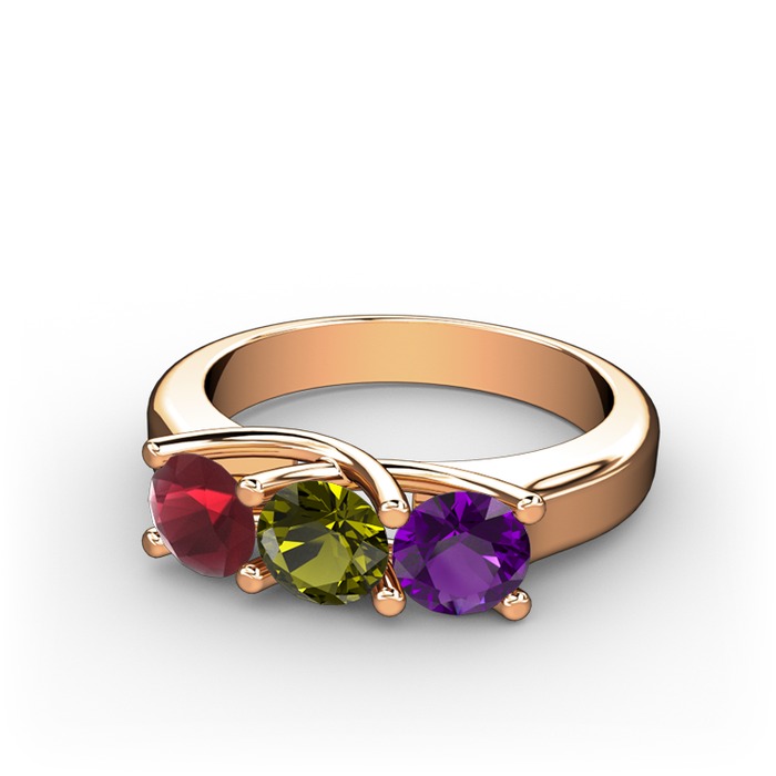 Kök yakut, peridot ve ametist 8 ayar rose altın yüzük