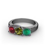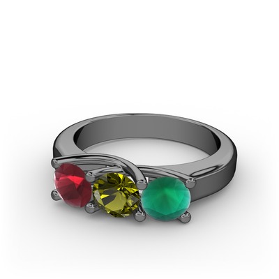 Kök yakut, peridot ve kök zümrüt 925 ayar siyah rodyum kaplama gümüş yüzük