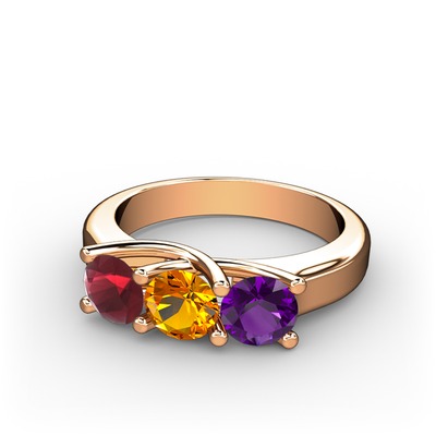 Kök yakut, sitrin ve ametist 8 ayar rose altın yüzük