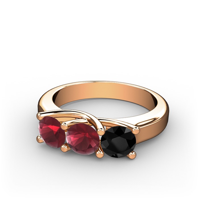 Kök yakut ve siyah zirkon 18 ayar rose altın yüzük