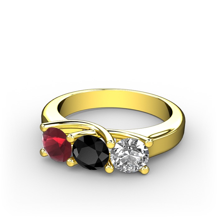 Kök yakut, siyah zirkon ve pırlanta 925 ayar altın kaplama gümüş yüzük (0.5 karat)