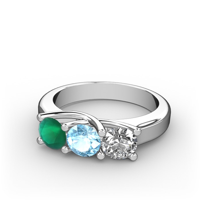 Kök zümrüt, akuamarin ve swarovski 18 ayar beyaz altın yüzük