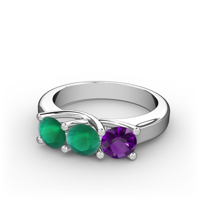 Kök zümrüt ve ametist 14 ayar beyaz altın yüzük