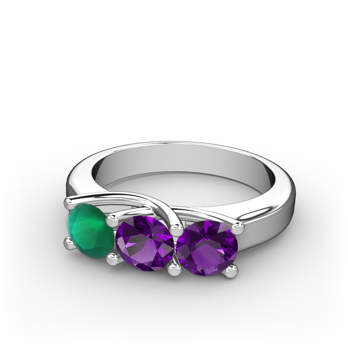 Kök zümrüt ve ametist 14 ayar beyaz altın yüzük