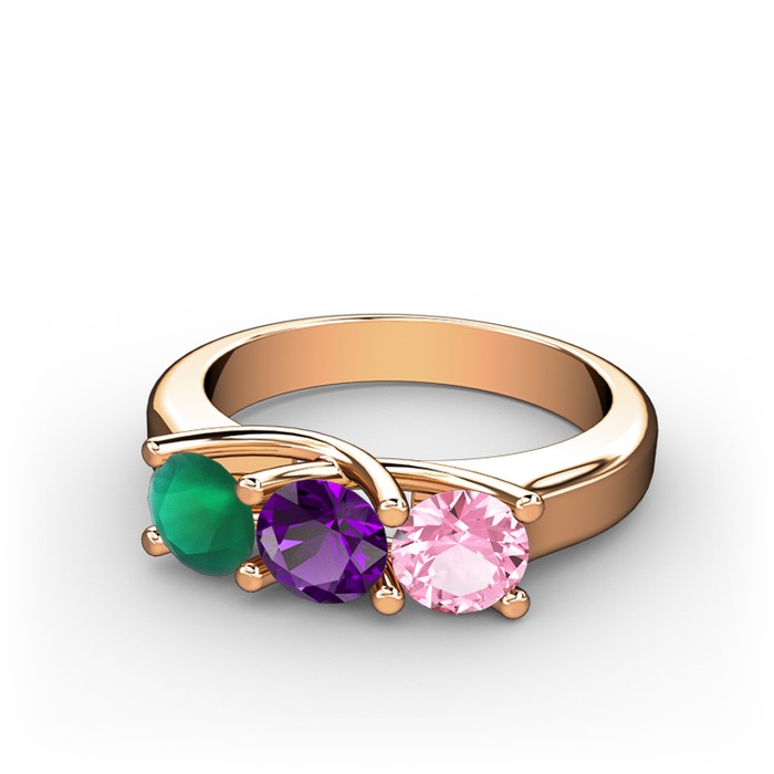 Kök zümrüt, ametist ve pembe kuvars 18 ayar rose altın yüzük