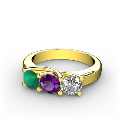 Kök zümrüt, ametist ve swarovski 18 ayar altın yüzük