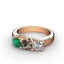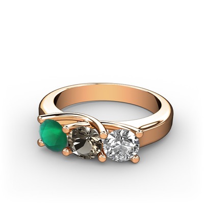 Kök zümrüt, dumanlı kuvars ve beyaz zirkon 8 ayar rose altın yüzük
