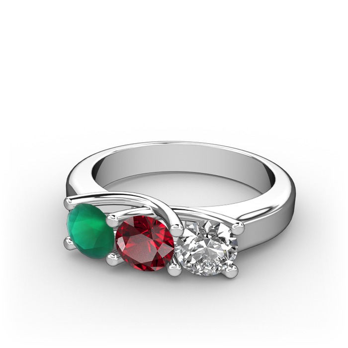 Kök zümrüt, garnet ve pırlanta 14 ayar beyaz altın yüzük (0.5 karat)