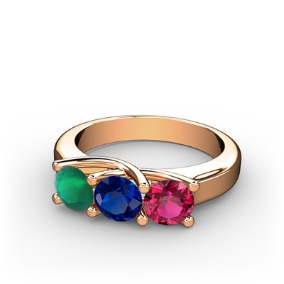 Kök zümrüt, lab safir ve rodolit garnet 925 ayar rose altın kaplama gümüş yüzük