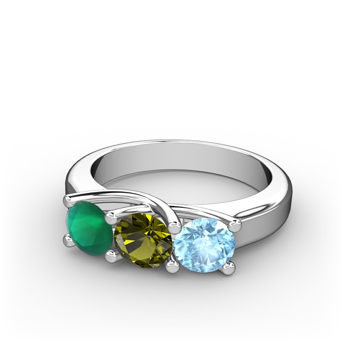 Kök zümrüt, peridot ve akuamarin 14 ayar beyaz altın yüzük