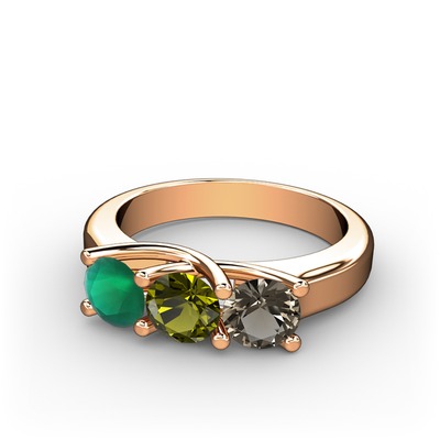 Kök zümrüt, peridot ve dumanlı kuvars 14 ayar rose altın yüzük