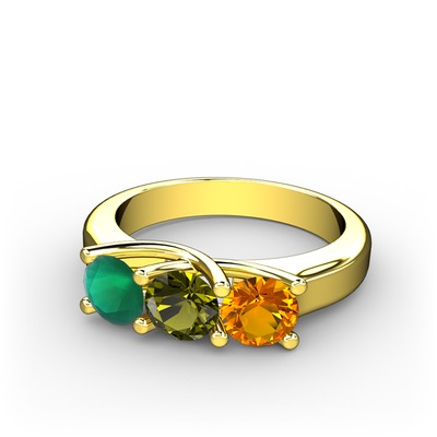 Kök zümrüt, peridot ve sitrin 18 ayar altın yüzük