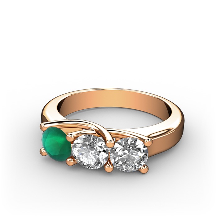 Kök zümrüt, pırlanta ve beyaz zirkon 18 ayar rose altın yüzük (0.5 karat)