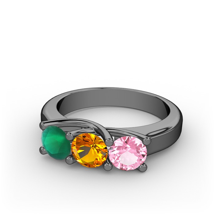 Kök zümrüt, sitrin ve pembe kuvars 925 ayar siyah rodyum kaplama gümüş yüzük