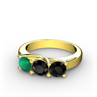 Kök zümrüt ve siyah zirkon 18 ayar altın yüzük