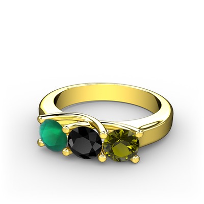 Kök zümrüt, siyah zirkon ve peridot 18 ayar altın yüzük