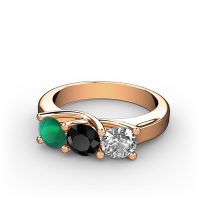 Kök zümrüt, siyah zirkon ve pırlanta 8 ayar rose altın yüzük (0.5 karat)